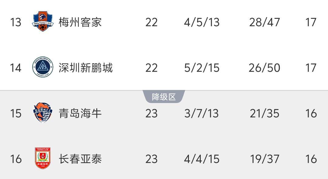 这个结果对于梅州客家和深圳新鹏城来说是一个利好消息,这两支球队本轮将直接对决,取胜的一方将在保级上占得先机。